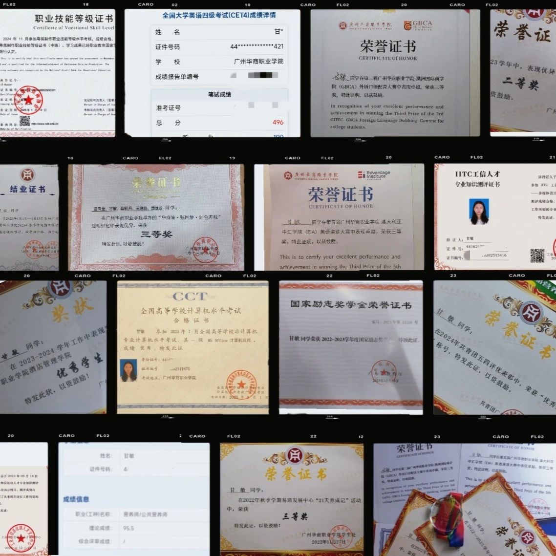 1、2024年获得酒店管理学院优秀学生干部