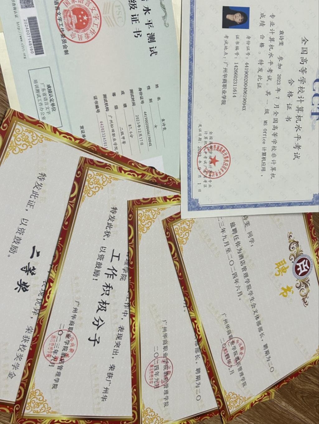 曾任酒店管理学院学生会文体部和礼仪部干部,23级新生辅导员助理,24级新生辅导员助理