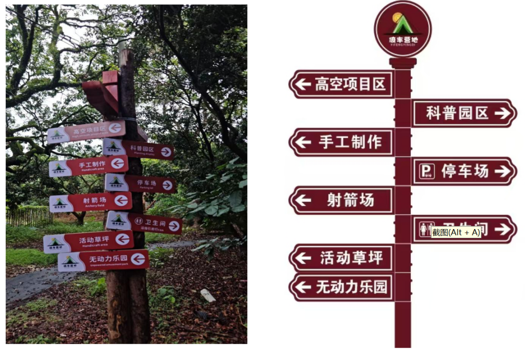 在对倚丰营地充分调研以及与营地负责人充分沟通的基础上,突击队积极回应关切,充分发挥旅游管理专业特长与学科优势,为营地量身打造了一系列课程优化与升级方案。队员们结合当前教育理念与市场需求,针对不同年龄段学生的特点,对营地现有的课程体系进行了全面梳理与改革升级。例如,在户外体验类课程中,进一步完善了课程目标与教学内容,强化了安全教育与专业技能培养环节。此外,突击队还为营地设计了景区引导路牌和景区地形图,提升了游客的游览体验。
