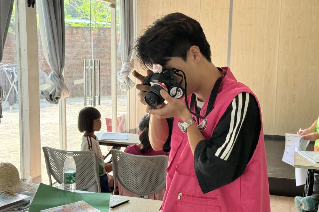 当孩子们的脚步声惊醒田间的露水,镜头便开始了忙碌的追逐。小手攥紧幼苗时指缝漏下的阳光,彩绘课堂上沾着金粉的鼻尖,稻田里追逐小鸭时扬起的衣角…… 这些灵动瞬间被一一定格。“每一次按下快门,都是对乡村振兴的一次微小助力。” 他们不畏烈日炙烤,不惧风雨突袭,背着设备穿梭在田埂与古村间,青春的汗水滴落在乡土上,晕开责任的印记。