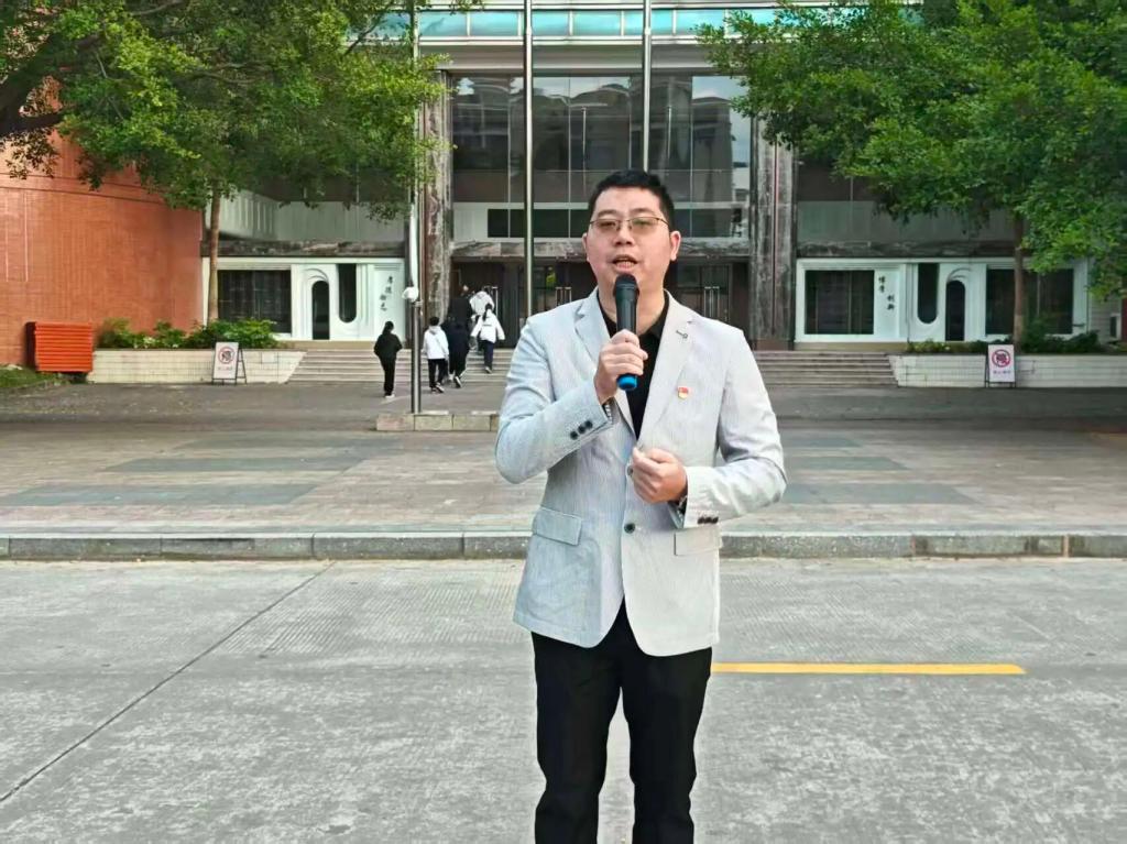 国旗飘扬,初心如磐。升旗仪式结束后,副院长谢锦权寄语学子:围绕“日月铭初志,旗旌指大同”主题,他回顾革命先辈坚守初心的历史,阐释“大同”所蕴含的平等、公正、和平追求与人类命运共同体理念的契合之处;提及党的二十届四中全会擘画的“十五五”规划蓝图,呼吁同学们铭记“国兴则家昌”,勤奋学习、积极实践,争做堪当民族复兴重任的时代新人,同时向师生送上祝福。