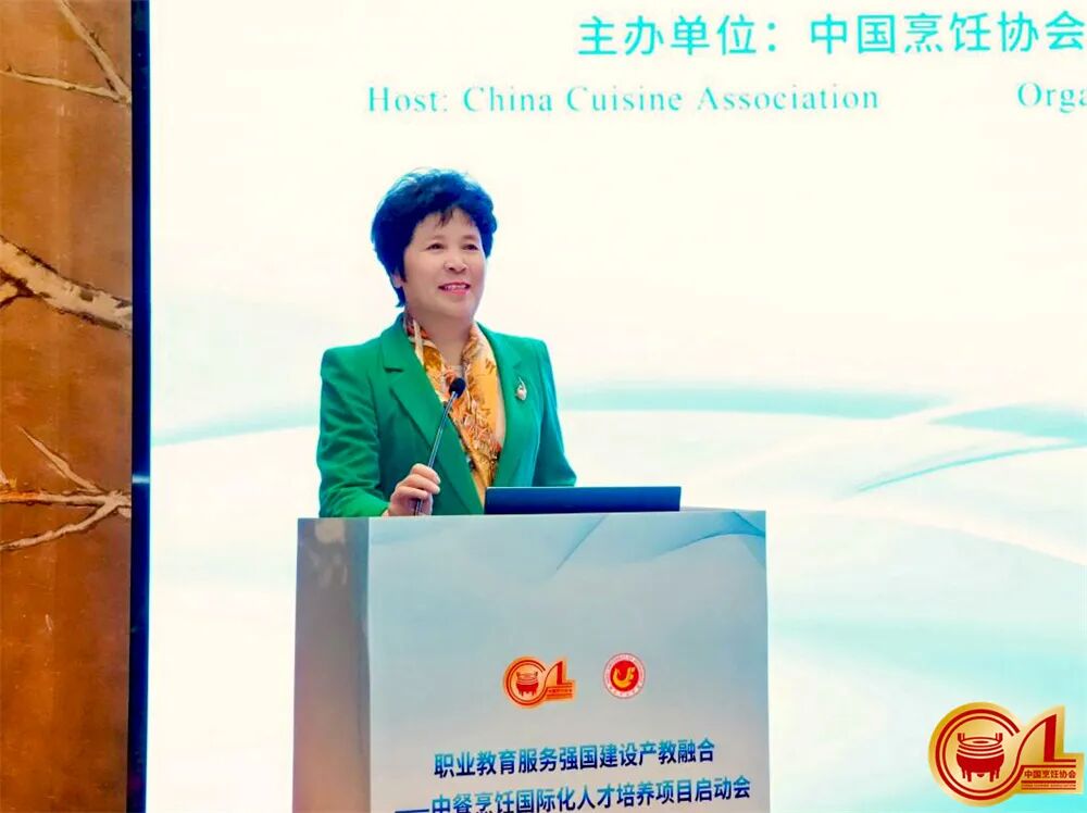 会上,杨柳会长作动员部署讲话,深刻阐释了中餐烹饪国际化人才培养项目的时代意义与战略价值。她指出,该项目作为教育部批准的职业教育服务强国建设产教融合重点项目,肩负着传承中华饮食文化、推动职教升级、促进中餐国际传播的光荣使命,是深化产教融合的里程碑,更是中餐国际化的标志性节点。杨柳会长围绕 “立足高远把握时代意义、聚焦核心构建实施路径、凝聚合力推进落地见效” 三大方向提出具体要求,为项目推进锚定航向、凝聚共识。