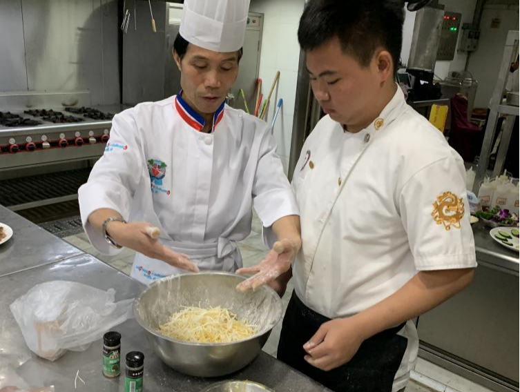2021年12月1日,肖建华先生应邀来到我校附属旅游酒店学院二楼中餐实训室给19级烹调工艺与营养1、2班的同学们传授专业知识。肖建华先生是广东大厦宾馆行政总厨,从事餐饮行业近40年,是专业的资深教授。今天特邀给烹调工艺与营养专业的学生讲“碟恋花”的制作方法和演示。