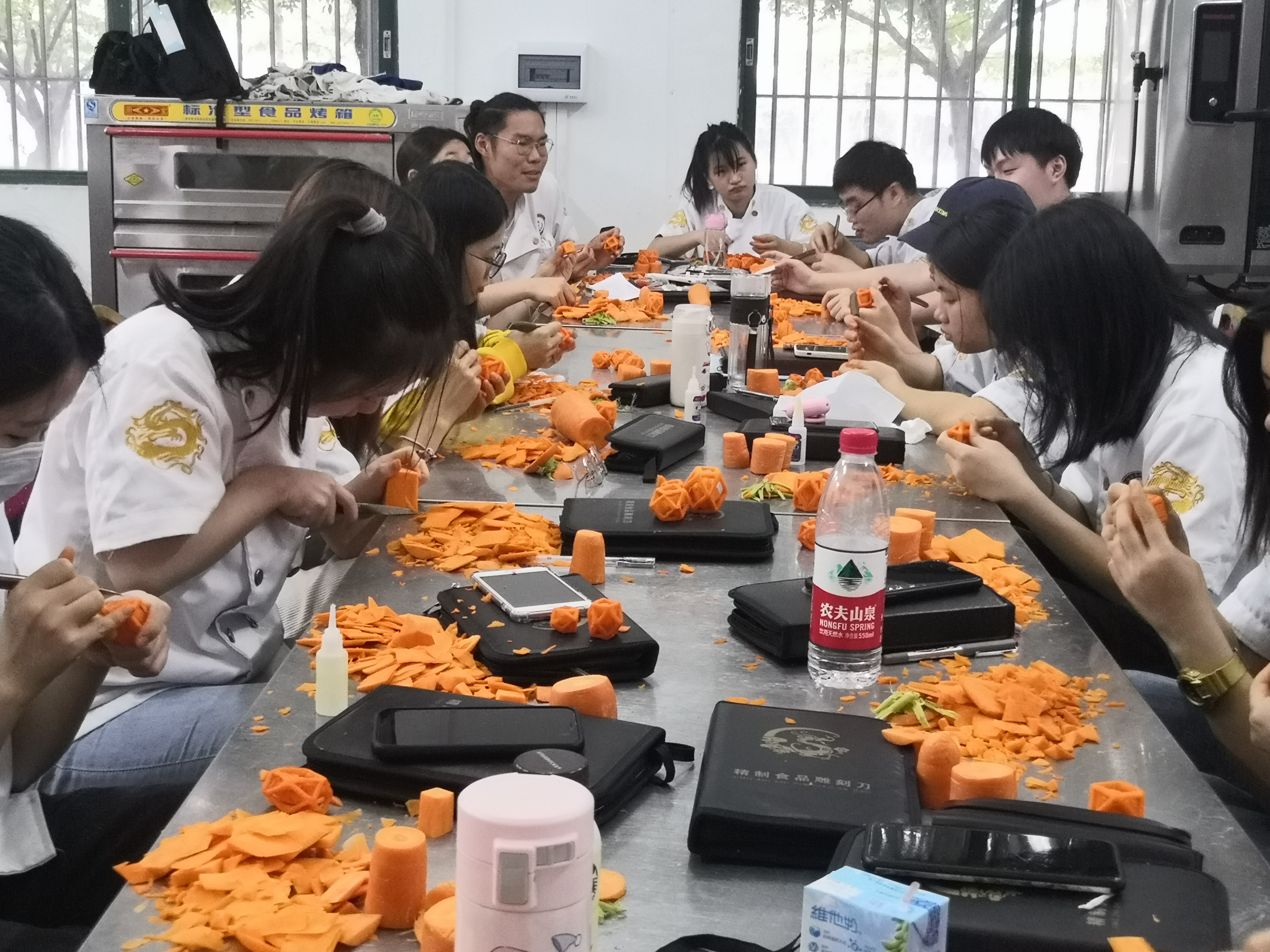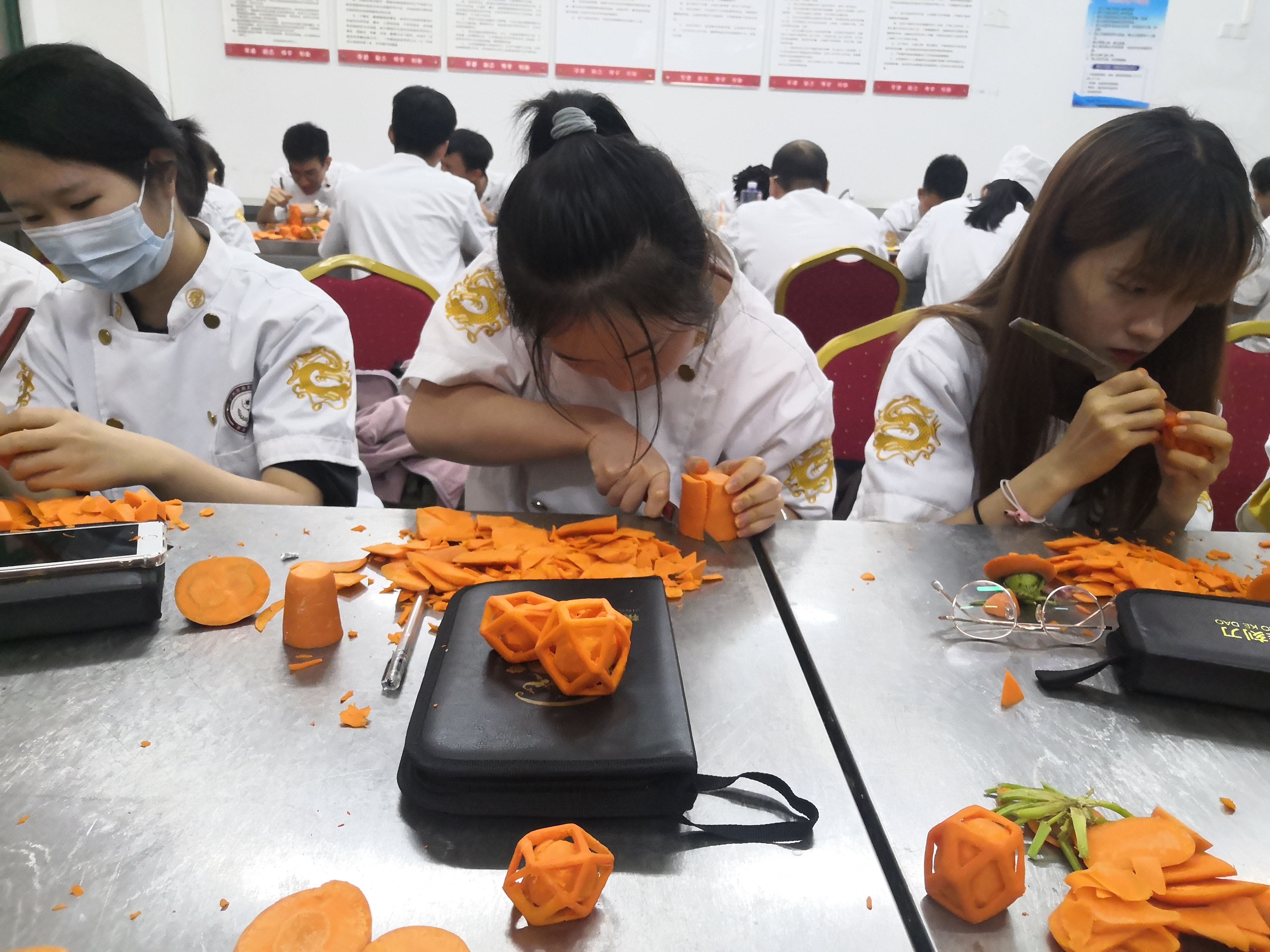 今天带大家走进酒店管理学院实训课堂,同学们正在全神贯注地进行食品雕刻训练。同学们手上制作的是“玲珑球”,玲珑球的寓意是事业通顺、财源滚滚,给主人带来好运道。