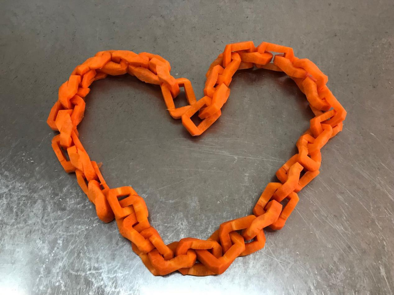 食品雕刻中锁链只是一个小物件,但是在一些车舟等雕刻中,可以起到锦上添花的作用。而且锁链也可当作新奇,观看一下,也是很有趣头的。