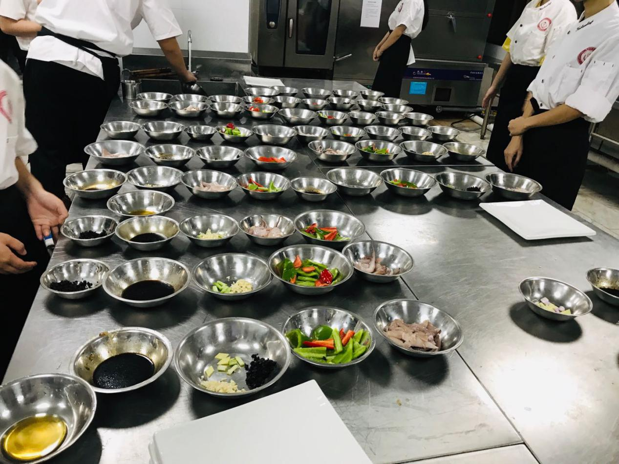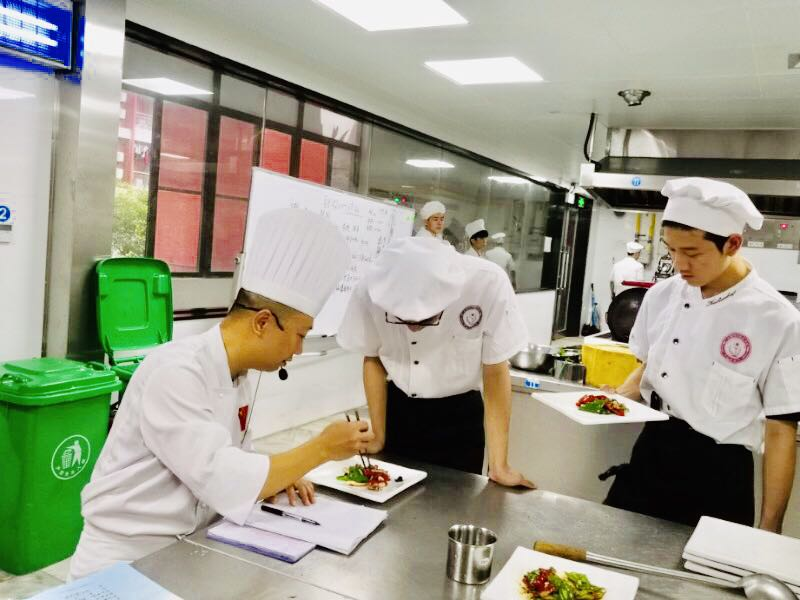 学生完成操作后交予指导老师品尝打分,有不足的地方,指导老师为之进行讲解、好的则给予赞誉与鼓励。学生悉心听讲.