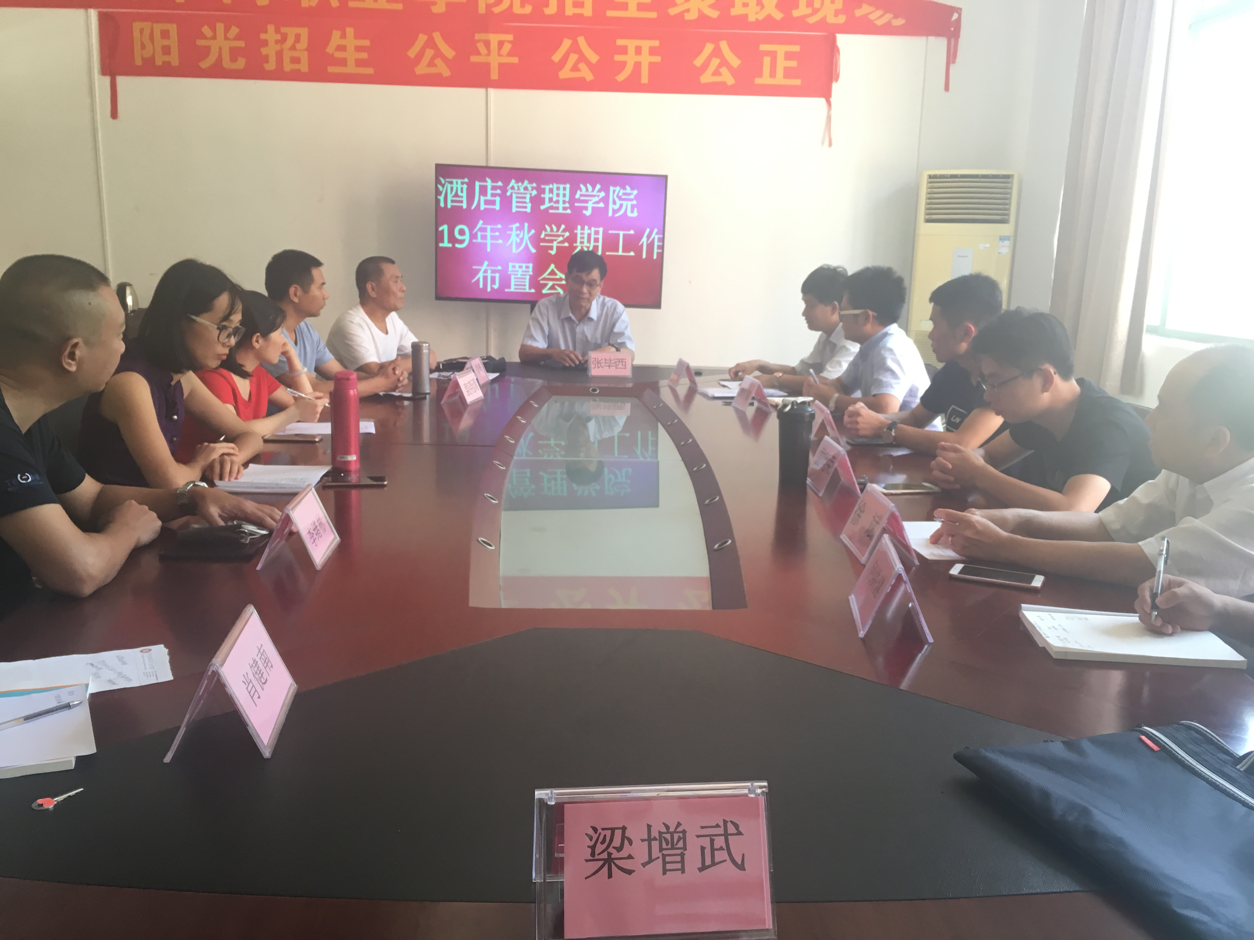 2019年9月3日下午,在创新楼211会议室召开了关于酒店管理学院开学初工作布置的会议。此次会议到场的人员有张毕西常务副院长和酒店管理学院的全体教师。