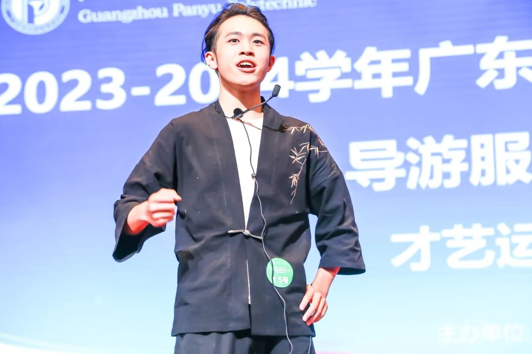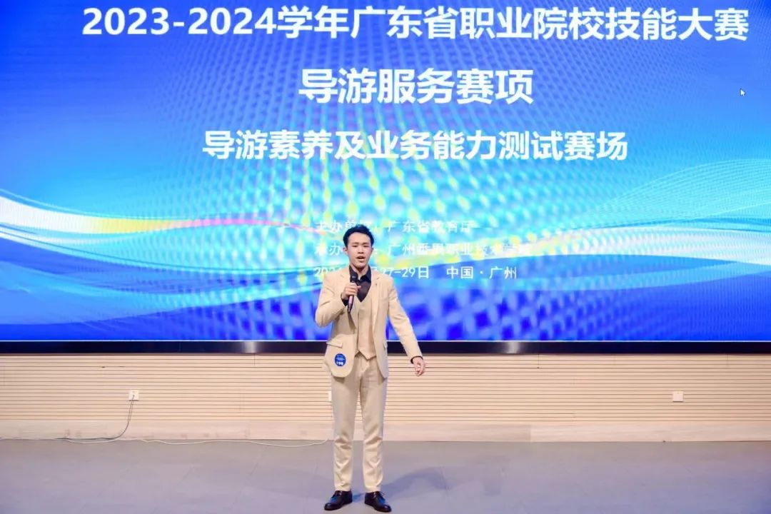 2024年2月27-29日,广东省职业院校技能大赛“导游服务赛项”在番禺举行,来自广东省57所高职院校的111位选手参加了此次竞赛。经过导游综合知识测试、抽选景点导游讲解、自选景点导游讲解、英语口语测试、才艺展示等五个环节的激烈角逐,酒店管理学院由方雪老师领队,周期、林琳老师指导的22级旅游管理一班罗家骏同学获得省赛三等奖。