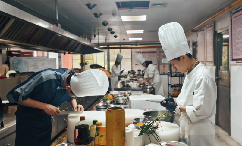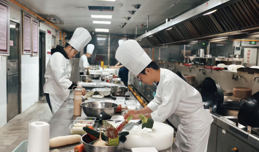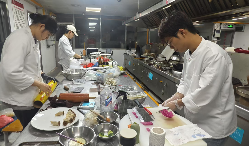 在本次比赛的筹备中,学校和学院高度重视,精心组织,全力以赴为参赛师生提供全方位的支持与保障。酒店管理学院师生凝心聚力、全力备战,指导老师制定了详细的备赛计划,涵盖指定菜训练、自选热菜、冷拼、面点等项目的强化,耐心解决学生的每一个疑问。