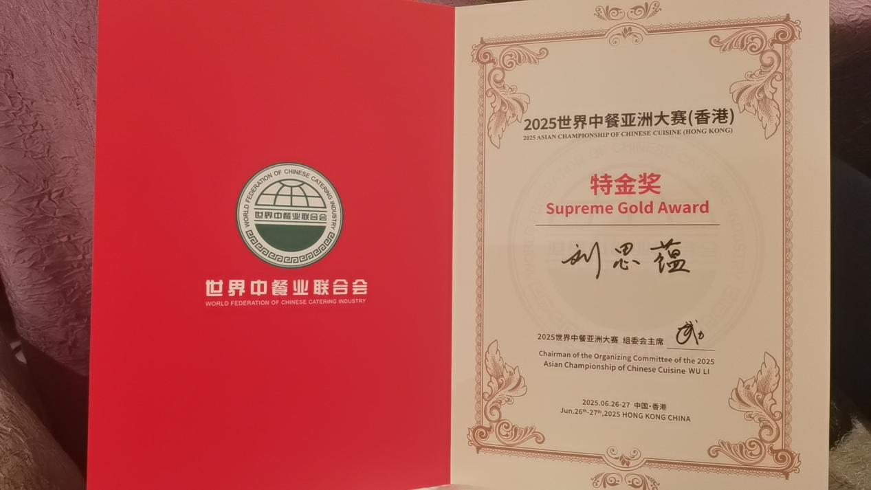 2025年6月26日,由世界中餐业联合会主办的2025世界中餐亚洲大赛在香港中华厨艺学院隆重举行。来自亚洲各地的70支顶尖队伍齐聚“中华名厨堂”,在九国评委团的严格评审下展开激烈角逐。广州华商职业学院酒店管理学院教师吴浩波与刘思蕴凭借匠心技艺与创新融合,以优异成绩勇夺个人特金奖,学校同时荣膺团体特金奖。