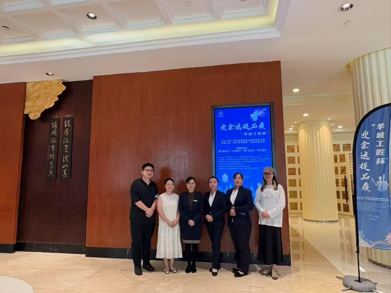 近日,广州华商职业学院旅游管理专业与酒店管理与数字化运营专业的教师团队,作为广州阳光酒店的培训教师,积极参与了 “羊城工匠杯” 2025 年广州市住宿和餐饮服务技能竞赛暨第六届 “青年粤菜师傅” 创新创业竞赛中的餐厅服务员(中式、西式摆台)以及客房服务员竞赛项目的指导工作。