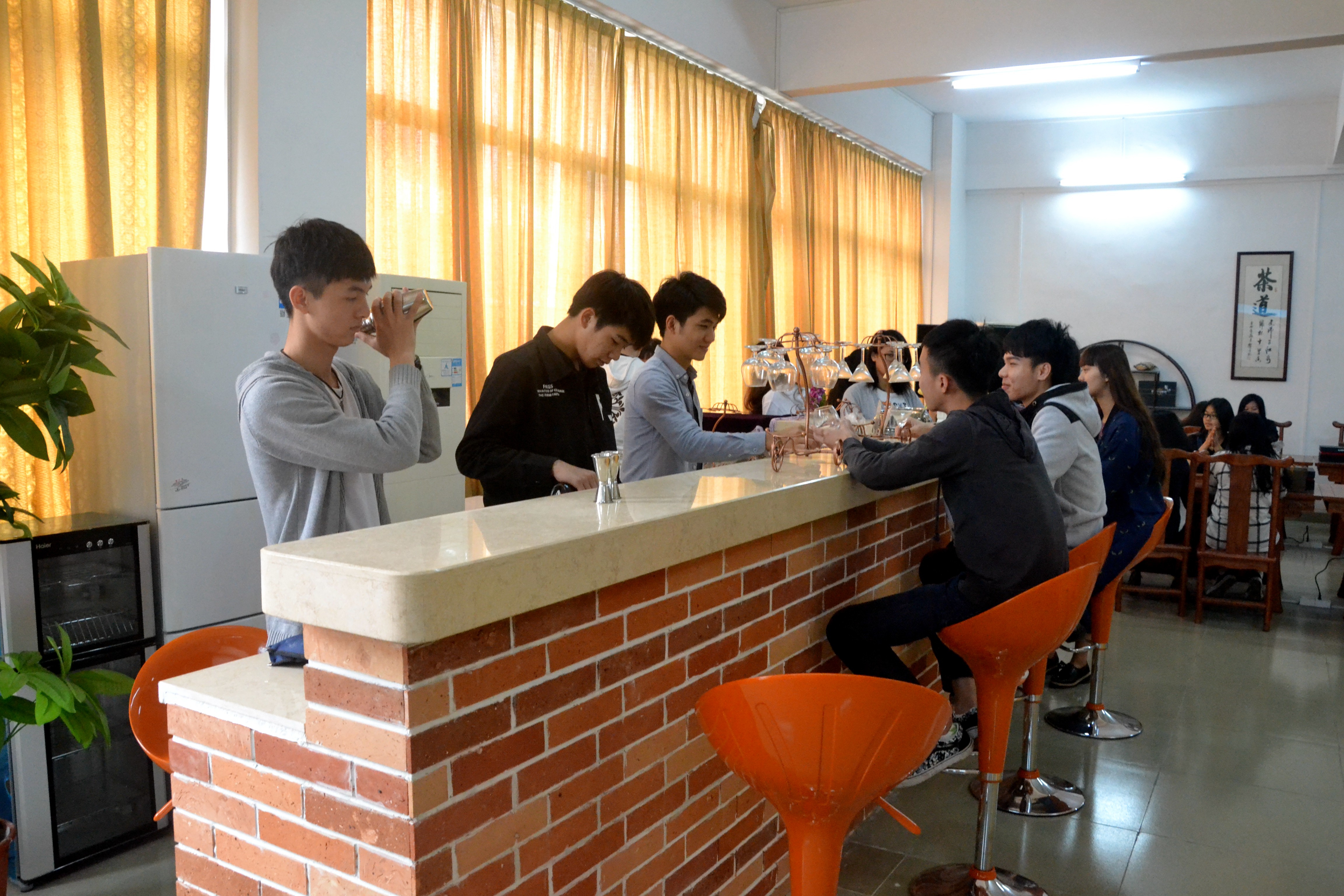 中餐摆台、调酒、咖啡冲泡、餐巾折花、西餐酒水服务、中西餐宴会设计、自助餐服务及酒店英语口语实训。