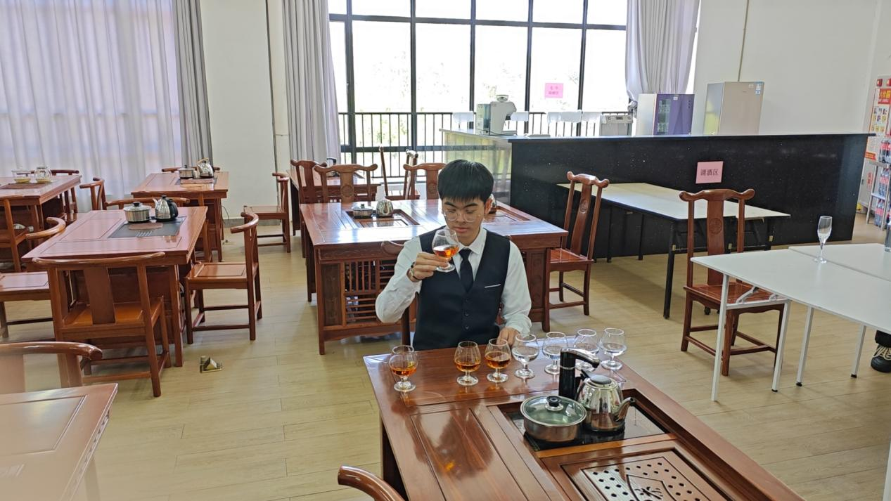 在竞赛过程中,广州华商职业学院的选手们全情投入。在烈酒品鉴环节,选手们仔细观察色泽、轻嗅香气、品味口感,努力辨别8款烈酒的品牌产地、年份及风味特征;在鸡尾酒调制与服务环节,他们手法熟练,将各类酒水与配料巧妙搭配,精心装饰每一杯鸡尾酒,试图展现出独特的创意与精湛的技艺。尽管选手们全力以赴,但面对众多实力强劲的竞争对手,最终未能斩获奖项。