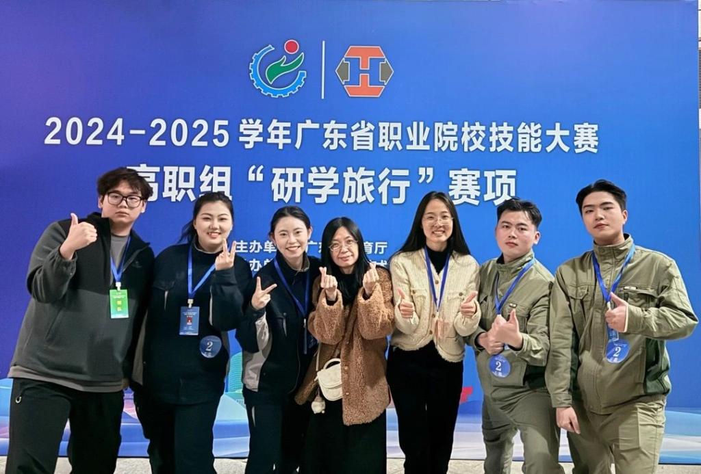 2025年3月12日-13日,广东省职业院校技能大赛“导游服务赛项”在广州番禺职业技术学院举行,来自广东省56所高职院校参加了此次竞赛。广州华商职业学院酒店管理学院派出了由学生陈雨欣、黄雯燕、温晴晴、张志豪以及指导老师林琳、方雪组成的参赛团队获得省赛三等奖。