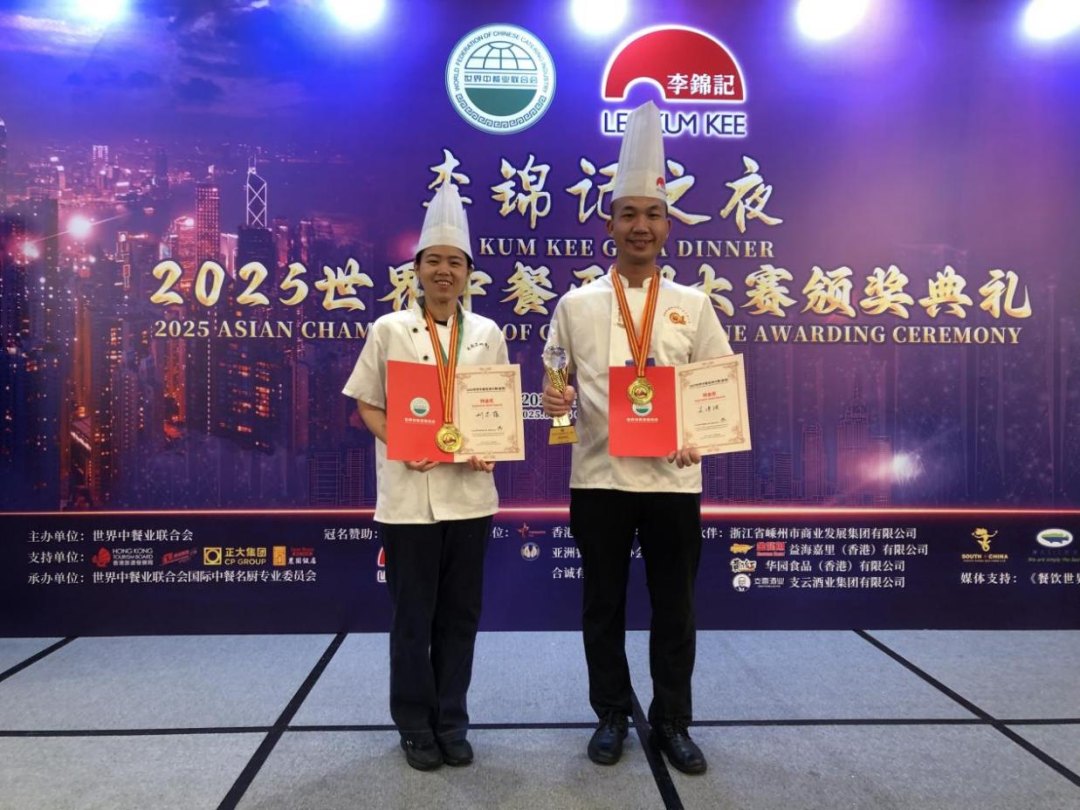 2025年6月26日,广州华商职业学院酒店管理学院教师吴浩波与刘思蕴凭借匠心技艺与创新融合,以优异成绩勇夺个人特金奖,学校同时荣膺团体特金奖。