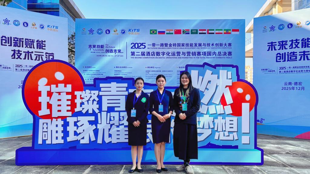 近日,2025年“一带一路”暨金砖国家技能发展与技术创新大赛第二届酒店数字化运营与营销赛项总决赛在德宏职业学院圆满落幕。我校酒店管理与厨艺学院学子陈嘉仪、彭思妮,在领队曾瑞老师以及指导老师方雪、江耀辉的带领下,于12月10日至14日奔赴赛场,与全国强手同台竞技,最终凭借扎实的专业功底和良好的团队协作,斩获优秀奖。