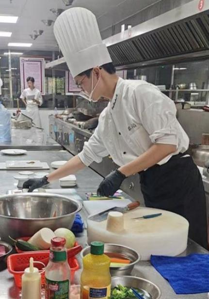 成绩的取得,离不开学校对“以赛促教、以赛促学”理念的坚持。备赛期间,学院领导高度重视,徐斌老师团队针对省赛的新赛制、新标准制定了周密的训练计划,从理论研磨到实操演练;从刀工的毫厘精准,到火候的秒秒把控,再到菜品风味的反复调试,每一个细节都凝聚着师生共同的汗水与智慧。备赛期间,实训室里深夜不熄的灯光、师生们专注研讨的身影,共同构成了最动人的奋斗图景。
