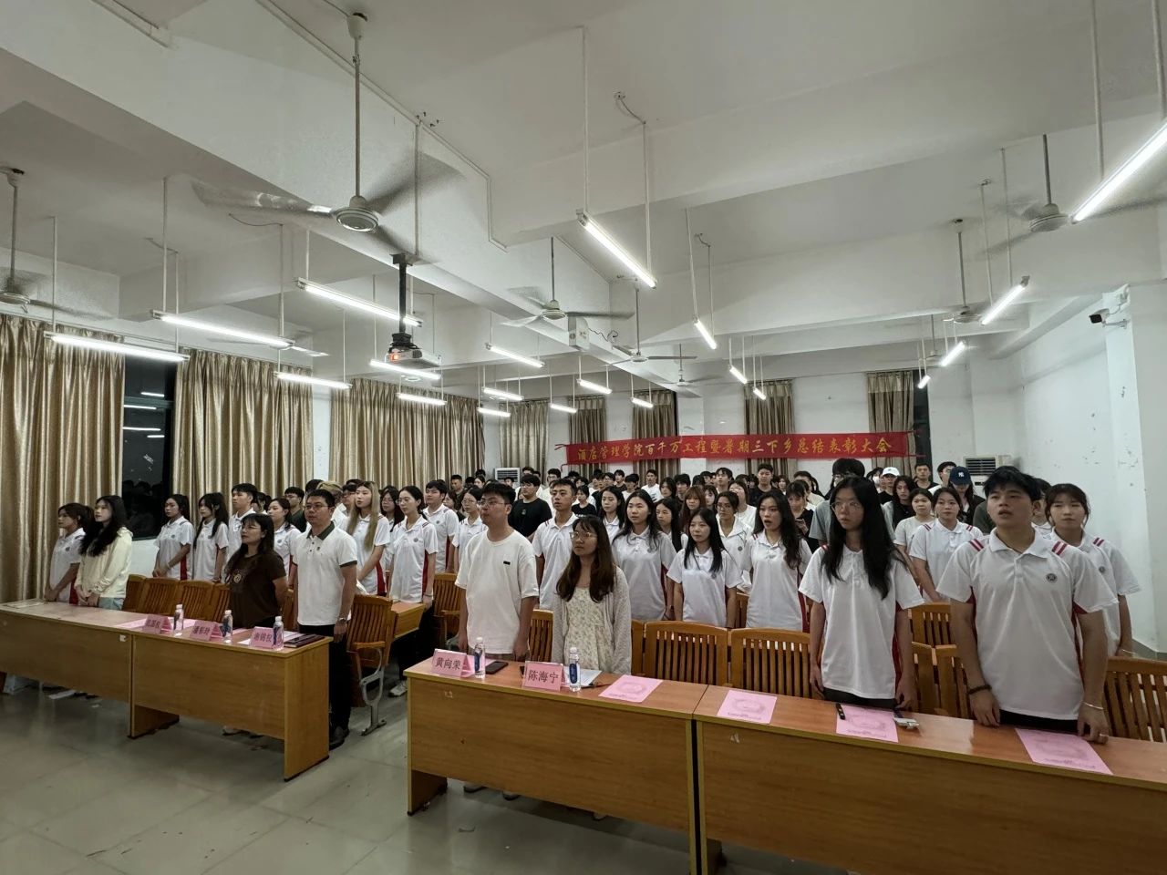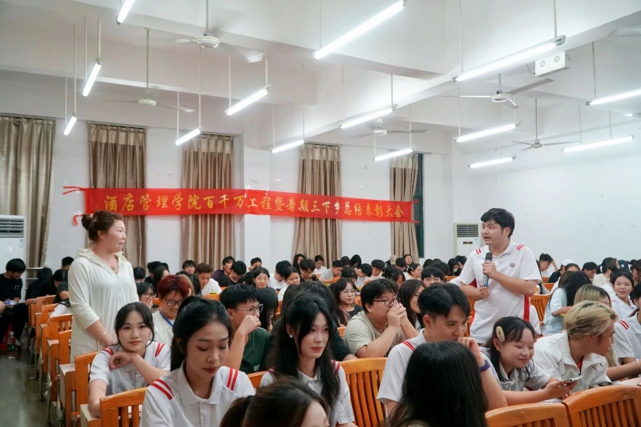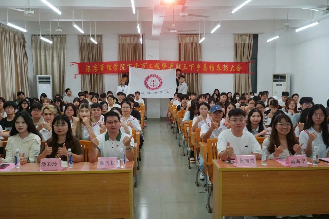 为了及时表彰先进、树立榜样,总结和凝练我院“百千万工程”突击队行动暨大学生暑期“三下乡”优秀社会实践成果,酒店管理学院于10月16日晚,在博学楼A507举行了“百千万工程”突击队行动暨大学生暑期“三下乡”社会实践活动总结表彰大会。我院两支实践队全体成员以及100多名师生代表参加了活动。