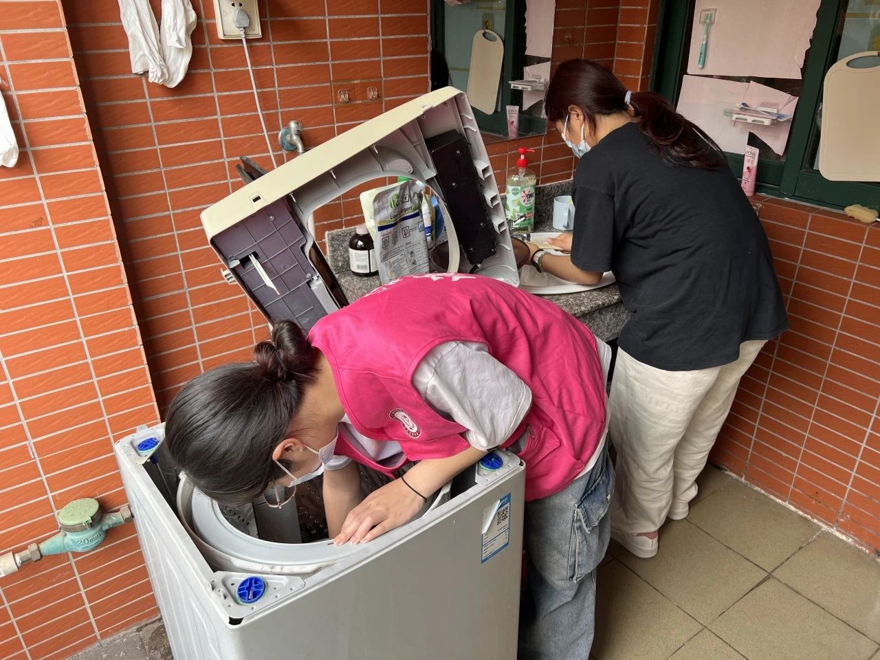 活动当天,酒管的志愿者们集合完毕,经过简短的培训,大家迅速掌握了清洗洗衣机的正确方法和注意事项。他们分组前往各个宿舍,开始了忙碌的工作。在清洗过程中,志愿者们分工明确,有的负责拆卸洗衣机的过滤网,清理出其中积累的杂物;有的则仔细擦拭洗衣机的内筒和外壳,去除顽固的污渍;启动洗衣机进行深度清洗。尽管过程中可能会遇到一些困难,比如顽固污渍难以去除,或者洗衣机的零部件较为复杂难以拆卸,但志愿者们凭借着耐心和毅力,克服了这些难题。