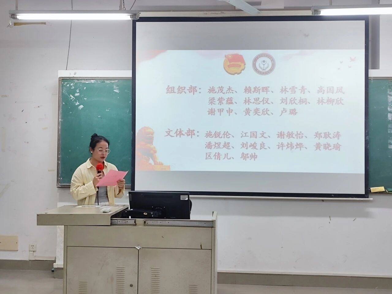 宣读新一届团委学生会成员名单