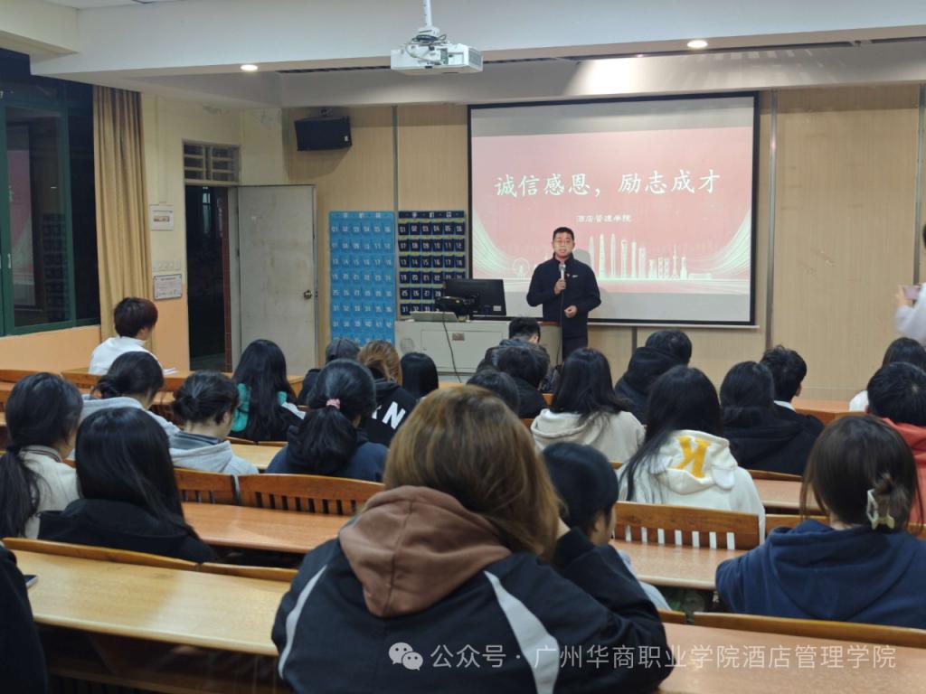 为了深化资助育人理念,激发学生的感恩励志精神,引导学生正确理解和运用国家及学校的资助政策,培养他们成为德才兼备的社会栋梁,酒店管理学院于2024年12月19日晚上在创新楼101成功举办了“诚信感恩,励志成才”主题讲座。本次讲座由辅导员陈海宁老师主持,副院长谢锦权,辅导员黄向荣、潘彩玲老师以及全体获得奖助的同学共同参与。