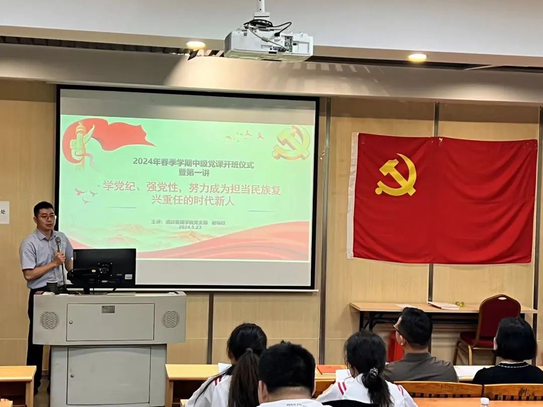 为了进一步加强我院党建工作,加强对入党积极分子的教育与培养,酒店管理学院直属党支部于5月23日中午在创教101举行了第二十九期中级党课培训开班仪式暨第一讲。