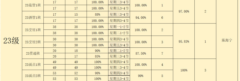 24级烹饪工艺1班:95.36%