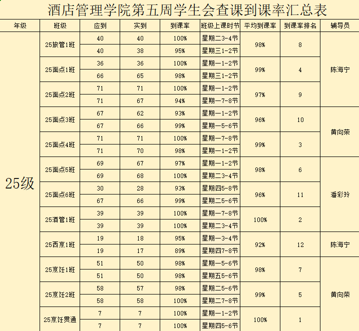 25级酒店管理1班:100%