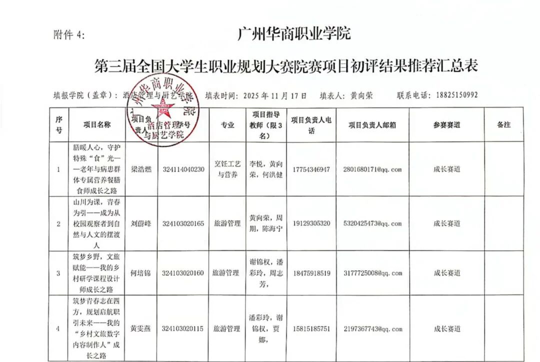 为贯彻落实党中央、国务院关于高校毕业生就业工作的决策部署,落实《国务院关于印发“十四五”就业促进规划的通知》精神,加强高校生涯教育和就业指导,增强大学生生涯规划意识,指导其及早做好就业准备,促进高校毕业生高质量充分就业,酒店管理与厨艺学院于11月17日完成对参赛选手提交资料进行网评初选,选拔出5名入围第三届全国大学生职规赛院级初赛选手,现将学院选出结果予以公示: