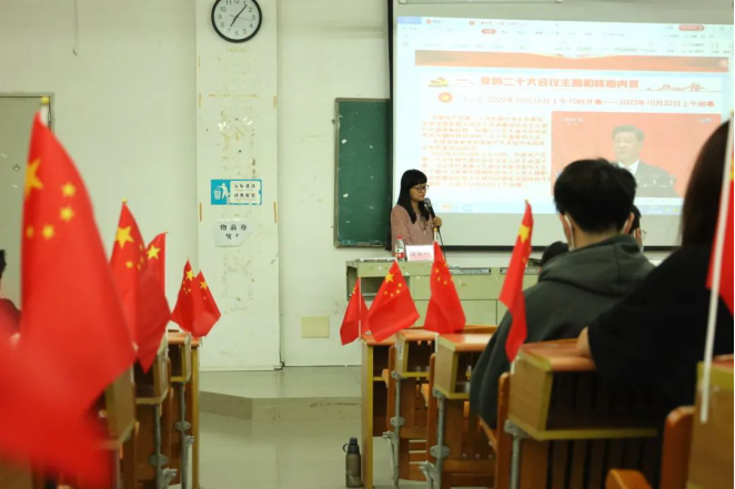 在讲座最后,潘主任带领我们朗读党的二十大对青年学生的使命要求:告诫我们作为新时代新人要坚定不移听党话、跟党走,怀抱梦想又脚踏实地,敢想敢为又善作善成,立志做有理想、敢担当、能吃苦、肯奋斗的新时代好青年。