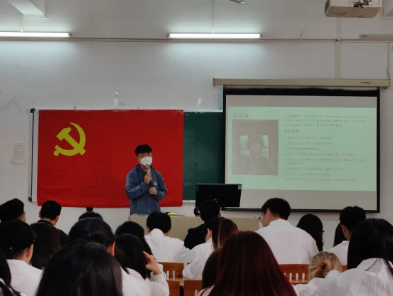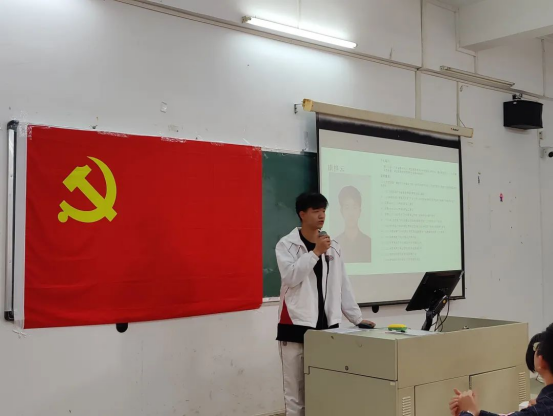 本期4名发展对象依次上台向党组织客观汇报考察期间个人在学习、工作、生活及思想等方面的表现,正式向党支部提出通表申请。他们在汇报过程中表明入党决心,并表示时刻准备着接受党组织考验,更好地发挥全心全意为人民服务的精神。从左到右分别为陈德森、陈宇亮、刘斯贤、黄金漫同学。