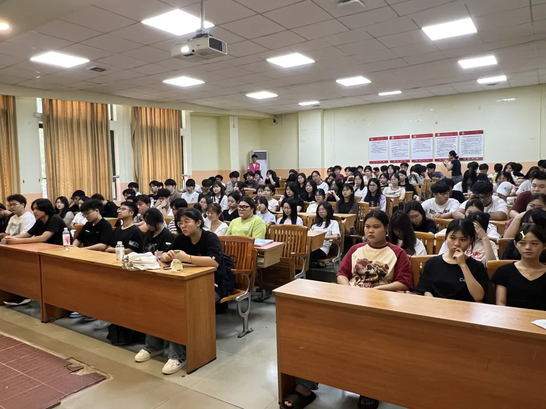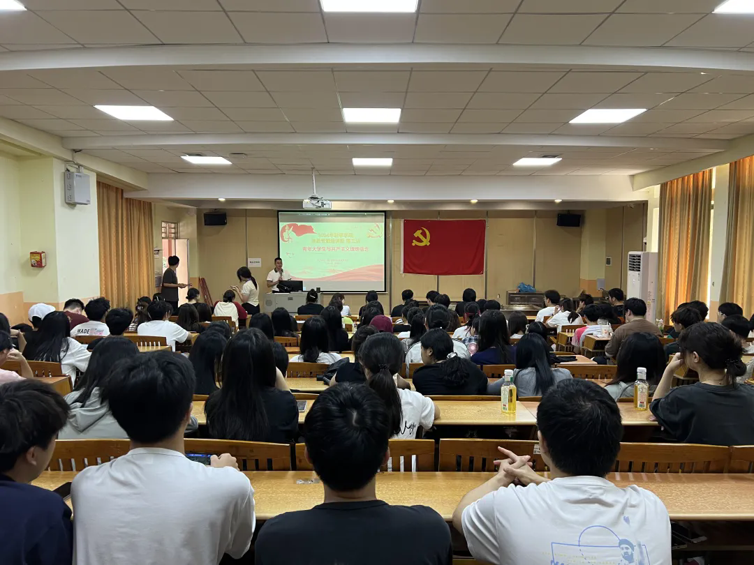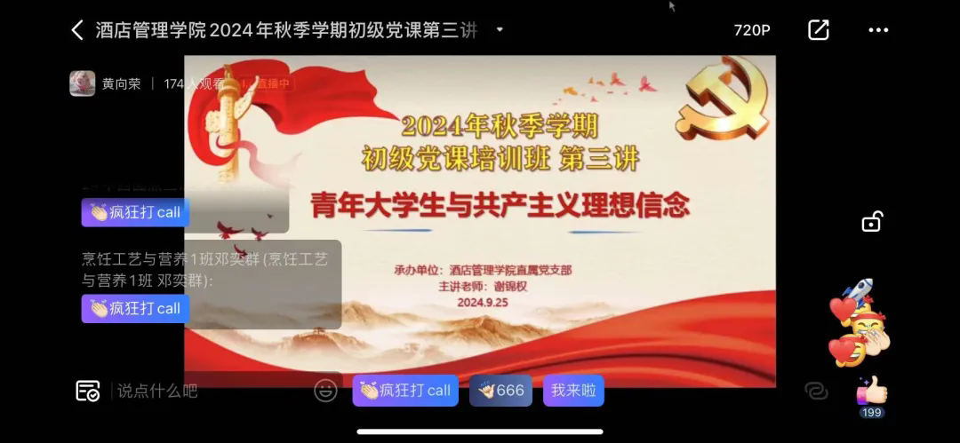 为切实加强入党积极分子的教育培养工作,帮助大学生树立共产主义理想信念,酒店管理学院直属党支部于9月25日中午在创教101开展了初级党课第三讲。我院副院长、党支部副书记谢锦权主讲;我院24级烹饪工艺与营养2班、24级旅游管理1班和24级酒店管理与数字化运营1班全体同学现场参加了党课,其他同学则通过钉钉平台在线同步学习。
