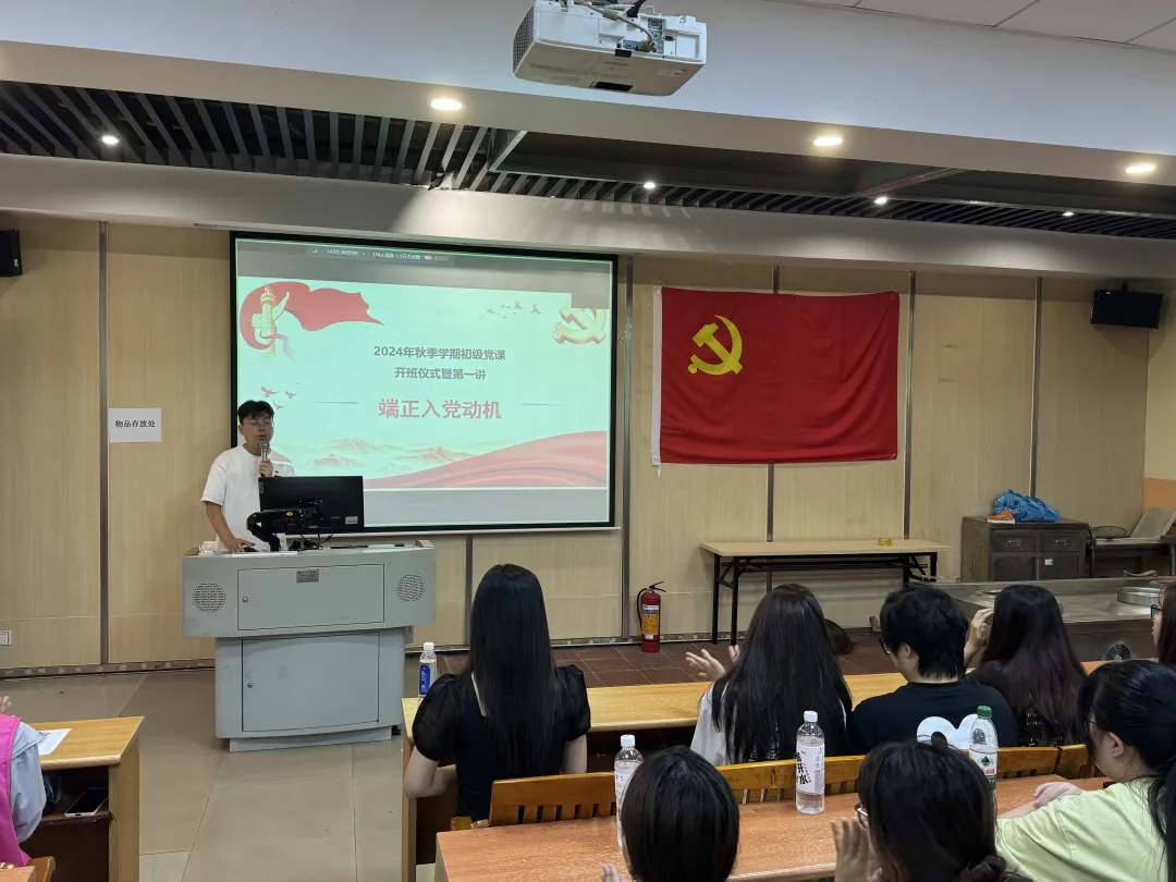 开班仪式上,酒店管理学院党支部组织委员黄向荣老师强调初级党课培训班的学习与纪律要求,同时,黄老师还为学员简要介绍了党员发展的流程,并引导大家共同学习党的二十届三中全会精神。