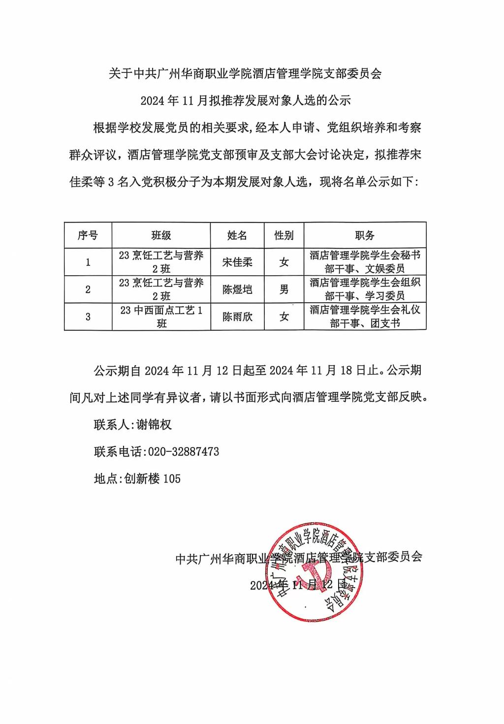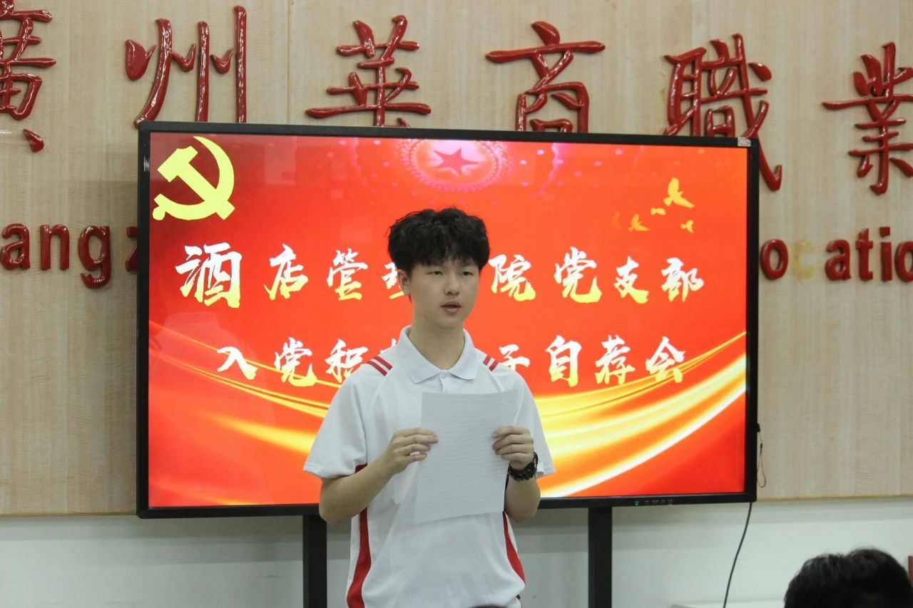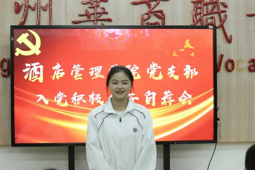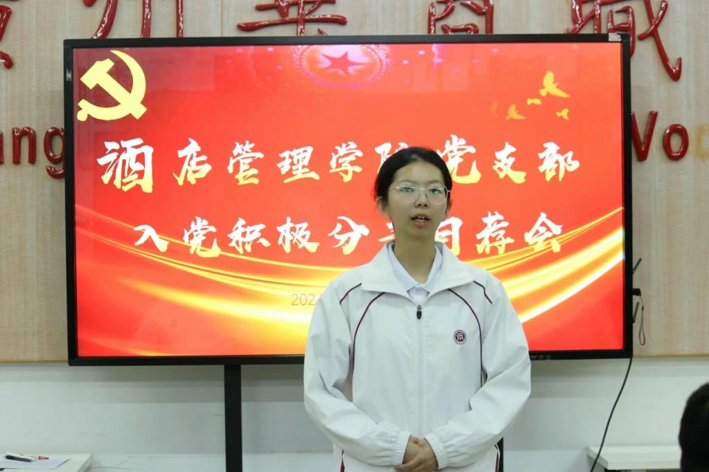 为进一步做好入党积极分子培养教育工作,加强党的基层组织建设,酒店管理学院于11月7日晚,在创实301召开了2024年秋季学期入党积极分子自荐会。我院党支部师生党员代表,以及12名入党积极分子参加了自荐汇报,会议由党支部组织委员黄向荣老师主持。
