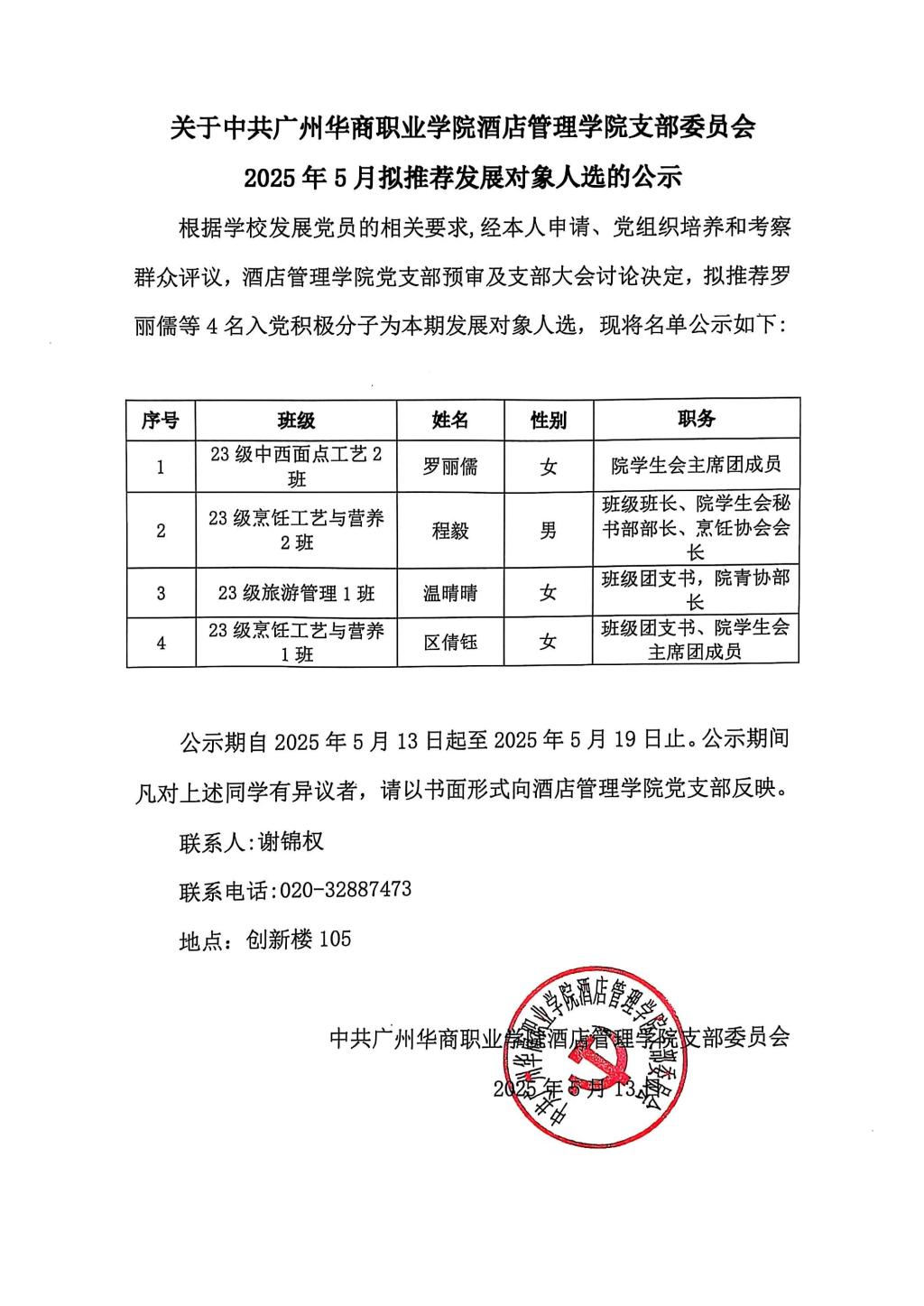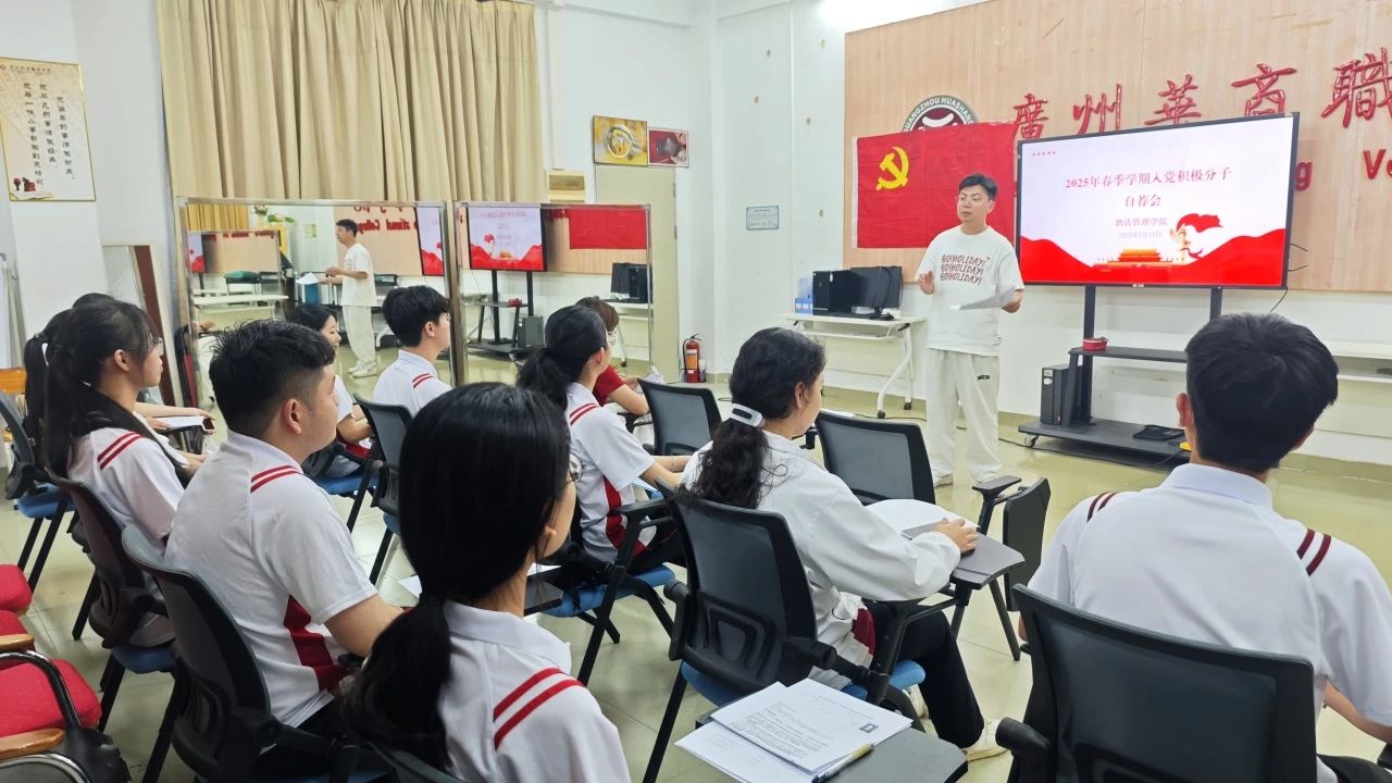 为进一步做好入党积极分子的培养教育工作,切实加强党的基层组织建设,酒店管理学院直属党支部于5月12日晚上在创实301教室召开了2025年春季学期入党积极分子自荐会。会议由党支部组织委员黄向荣老师主持。
