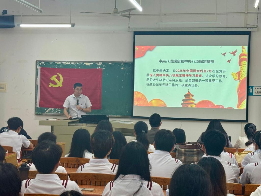 在此次大会上,谢锦权副书记带领支部全体师生党员及入党积极分子,重点学习了"中央八项规定和中央八项规定精神"。这次集体学习使大家对这一重要主题有了更深刻的理解。中央八项规定精神犹如灯塔,指引着中国特色社会主义事业。它推动理论创新,保持党的理论生命力;促进实践创新,解决发展难题;完善制度建设,筑牢治国根基;引领文化创新,凝聚社会力量。正是在这一精神的指引下,我们党才能战胜艰难险阻,创造人间奇迹。从革命战争到和平建设,从改革开放到脱贫攻坚,我们始终坚持守正创新:既坚守马克思主义真理和党的初心,又在实践中与时俱进,推动党和国家事业不断前进,向着民族复兴目标奋勇前行。