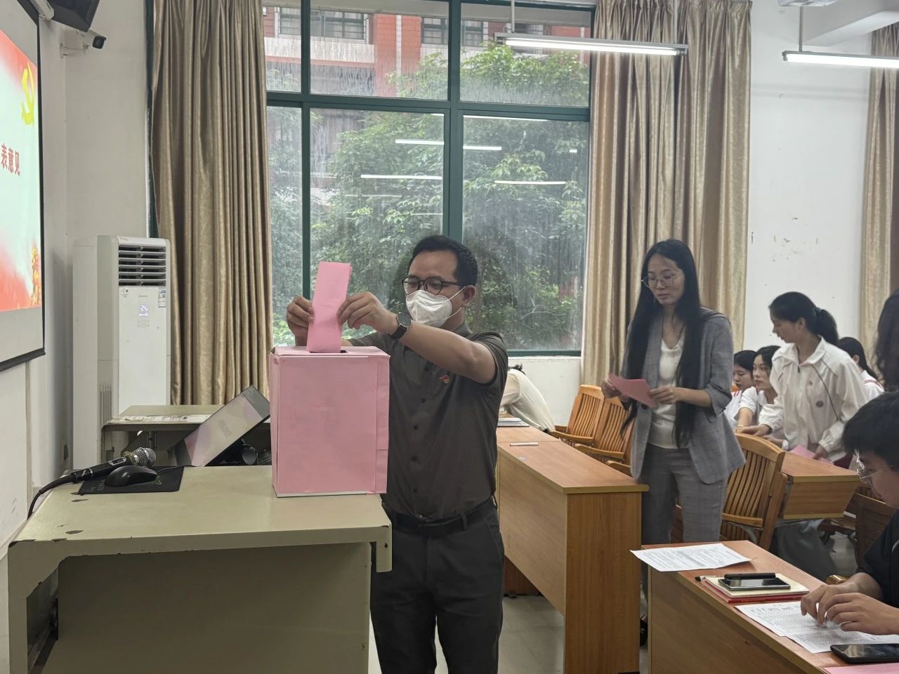 支部大会对陈雨欣、罗丽儒同志转为预备党员事宜进行了讨论。参会党员从思想表现、工作情况、群众基础等方面进行全面评议,既肯定成绩也指出不足。经到会的正式党员以无记名投票的方式表决,大会同意发展陈雨欣、罗丽儒同志为预备党员。