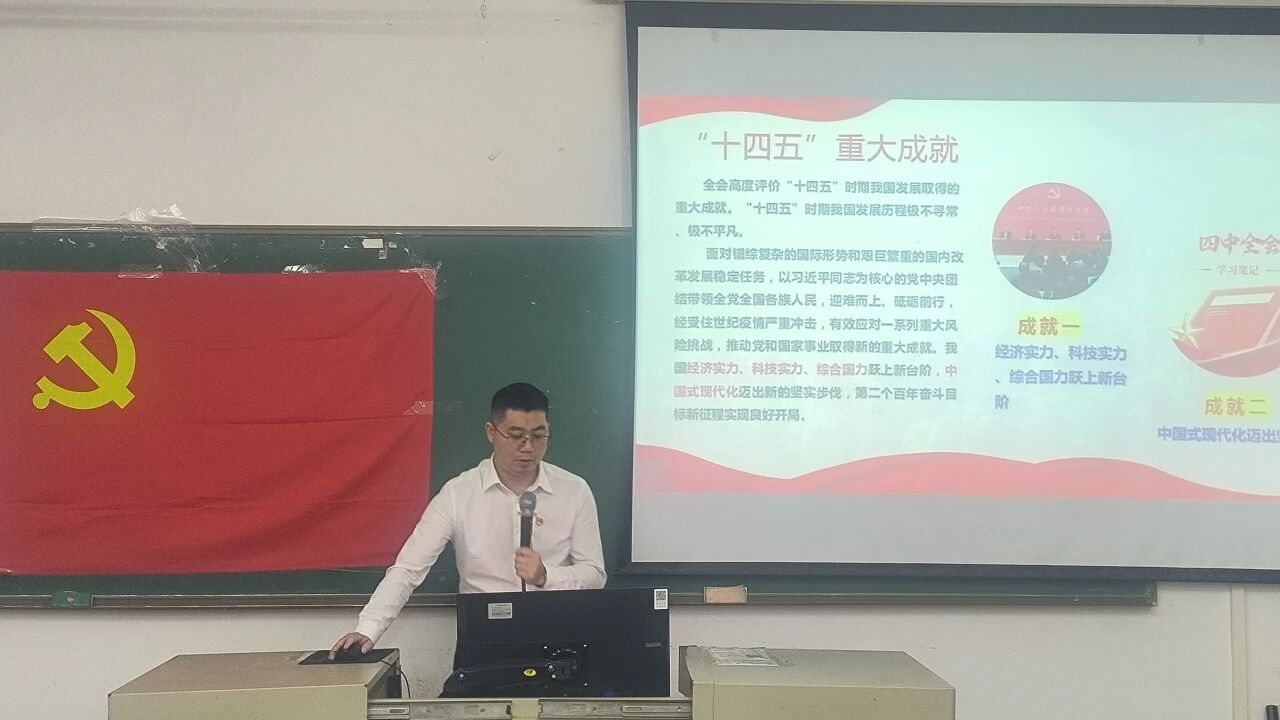 随后,与会人员深入学习习近平总书记在广东考察时的重要讲话精神。通过学习,师生党员们深刻认识到,学习宣传贯彻党的二十届四中全会精神,是当前和今后一个时期全党全国的一项重大政治任务。要结合党史宣传教育,讲好老一辈无产阶级革命家的故事,教育引导广大干部群众特别是青少年传承红色基因、赓续红色血脉,永远听党话、跟党走。要通过多层次多渠道宣讲培训,引导广大干部群众切实把思想和行动统一到党中央决策部署上来,进一步增进共识、增强信心、增添干劲。