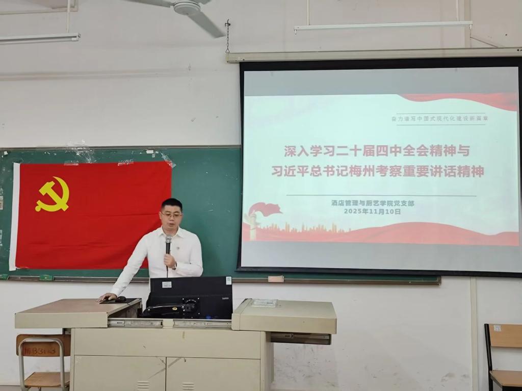 为深入学习贯彻党的二十届四中全会精神以及习近平总书记在广东考察时的重要讲话精神,切实把思想和行动统一到党中央决策部署上来,酒店管理学院党支部于11月10日在博学楼B302室召开了专题学习会。本次学习会由学院党支部副书记谢锦权领学,学院师生党员、预备党员及入党积极分子代表参加了学习。