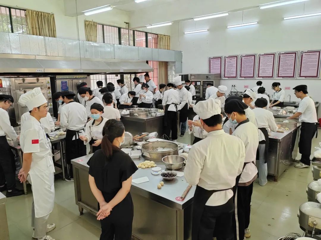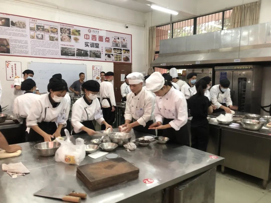 中式面点师(高级)国家职业技能鉴定考试实操考试作品打分现场本次中西面点师(高级)等级证书考证取得了圆满成功,考证通过率高达96%,这一成绩充分证明了我们课证融合育人模式的有效性,同时增强了我院人才培养自信心,为实现培养高素质、强技能人才的目标奠定了坚实的基础。