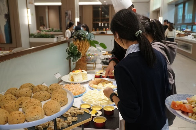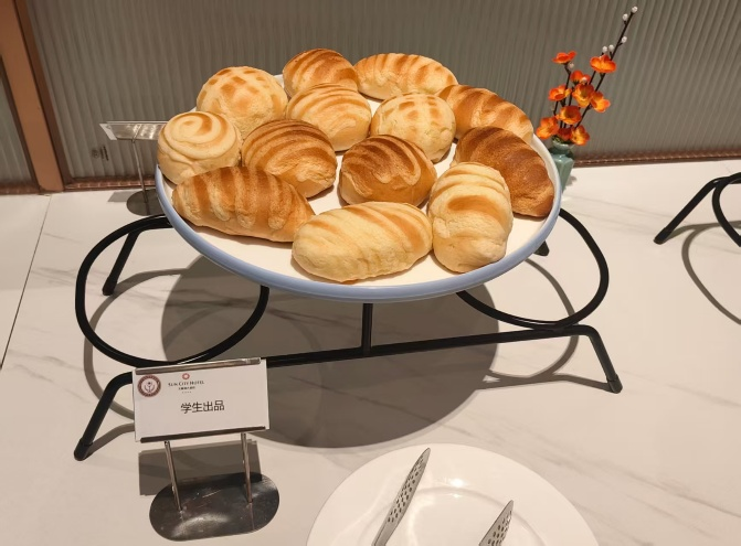 学生们的创新实践成果已在市场中崭露头角:小张团队设计的“桂花酒酿慕斯”借鉴非遗技艺,采用低脂奶酪制作,不仅荣获行业技能大赛银奖,更成为弘美餐厅的“隐藏菜单”;小李团队研发的“火龙果欧包”以新鲜火龙果汁调色,搭配全麦基底,因“健康颜值双高”成为客人拍照打卡的热门单品;还有造型憨态可掬的猪仔包、爆浆流心的流沙包,常常刚送抵餐厅就被点单。“以前上课只想着‘做对’,现在会主动思考‘客人喜欢什么’,这种转变特别有成就感。”小张说。