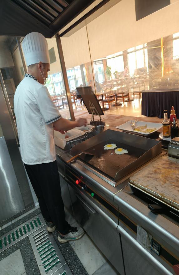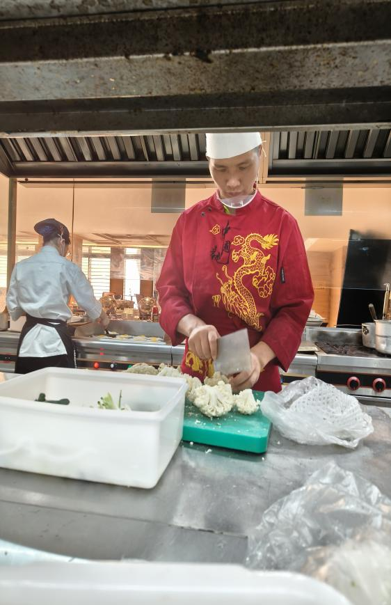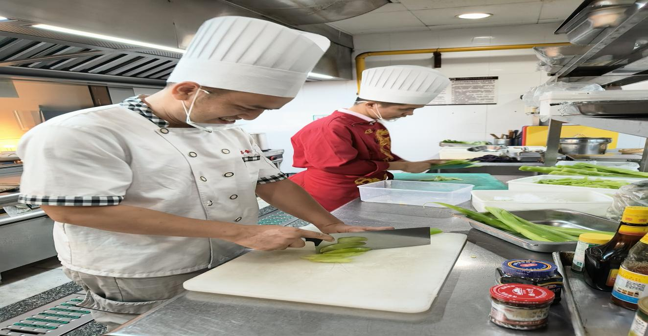 作为骨干教师虚心学习制作、西式扒类、海鲜盛宴等主题餐等,制定“咸鲜菜肴配清甜面点、油腻菜品搭清爽冷点”的搭配法则,还总结出“调味参数适配表”,为课堂教学提供量化标准;范国权老师专攻“批量制作与菜肴补餐协同”,在面点区掌握的精准工艺,破解“60分钟同步制作4款适配面点”的效率难题;宁丰贤则聚焦“颜值与场景适配”,学习西式扒类“菜点色彩搭配、高低错落摆台”技巧,让面点既适配菜肴视觉风格,又兼顾取餐便捷性。