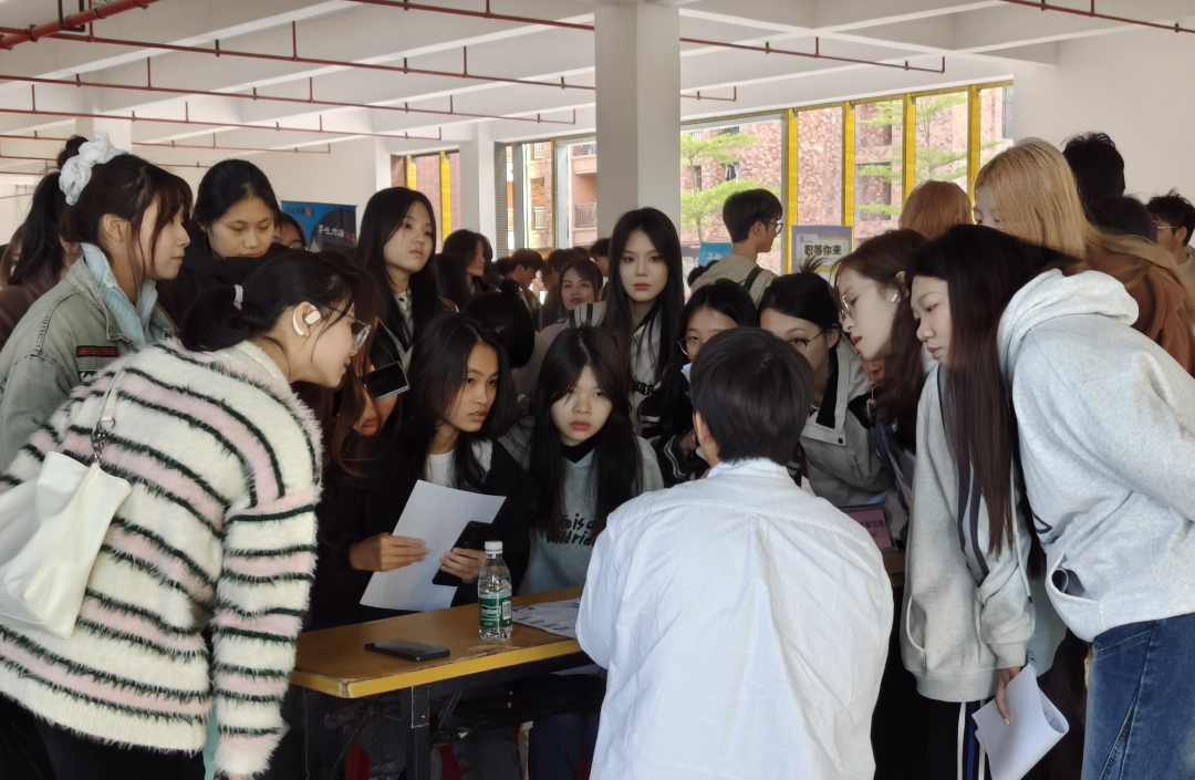 宣讲会结束后,活动进入第二阶段:企业招聘面试。在A2大厅,企业代表与毕业生们汇聚一堂,气氛热烈而有序。毕业生们满怀期待地向心仪的公司投递求职简历并现场面试,期待获得宝贵的实习机会。