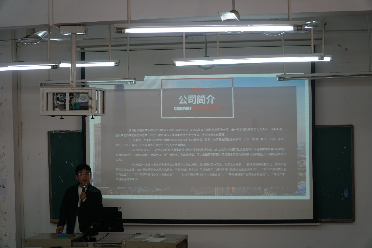 宣讲会上,谢锦权副院长代表酒店管理学院对企业来宾表示热烈欢迎和衷心感谢。谢锦权表示,学院高度重视毕业生的岗位实习与就业工作,通过积极访企拓岗加强校企合作,为同学们的实习与就业开拓更多优质的岗位。他希望同学们珍惜此次企业招聘宣讲会,把握面试机会,自信展示自我,认真对待实习,不断提高职业技能与职业素养。
