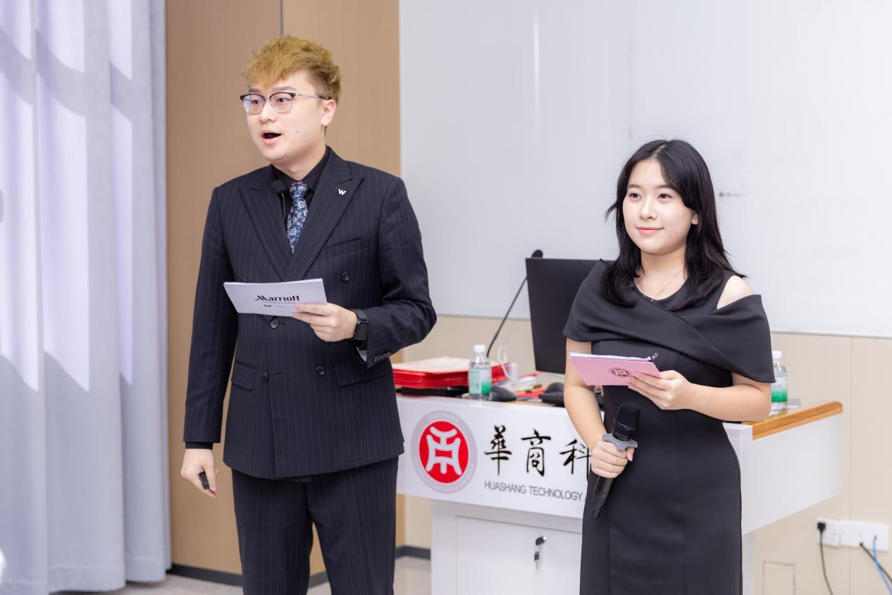 万豪国际集团大中华区奢华品牌校企关系项目负责人/广州W酒店人力资源总监冯屹先生,及深圳星河丽思卡尔顿酒店、深圳瑞吉酒店、深圳前海华侨城瑞吉酒店、深圳前海华侨城JW万豪酒店、金茂深圳JW万豪酒店、深圳华发JW万豪酒店的人力资源负责人,以及十余位万豪集团大湾区奢华品牌各酒店人力资源部同仁莅临活动现场;广州华商职业学院副校长赵永锋、产科教融合办公室主任王克明、招生就业处处长陈锦辉,酒店管理与厨艺学院院长林红梅、副院长谢锦权、各专业负责人、辅导员以及180余名学生代表参加了活动。活动由广州W酒店学习与发展经理牟潇凡与我校酒店管理与厨艺学院同学庄舒乔主持。