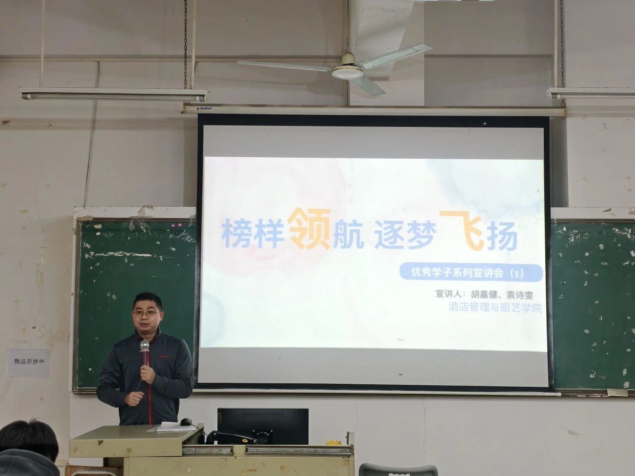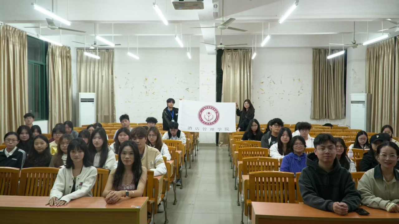 为发挥榜样引领作用、传递逐梦力量,11月13日,酒店管理与厨艺学院在博A207举办“榜样领航·逐梦飞扬”优秀学子宣讲会。22级中西面点专业袁诗雯、胡嘉健两位优秀学子分享成长故事,学院副书记谢锦权,教师黄向荣、周志芳、李文浩与近百名酒管学子共同赴这场青春励志之约。