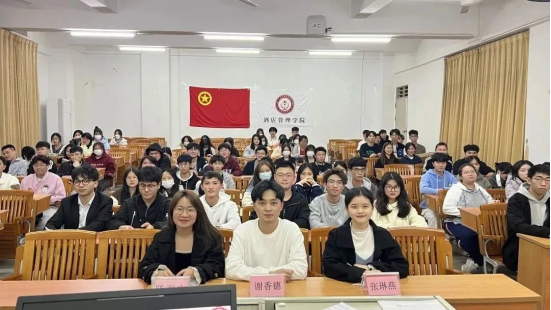 为进一步推进我院学风纪风教育,提升学生学习的积极性和信心,以优秀学子为榜样力量。2023年3月28日晚19:00,酒店管理学院举行了“榜样领航 逐梦飞扬”优秀学子第二场宣讲会。酒店管理学院党支部书记谢锦权、辅导员陈海宁、实习辅导员张琳燕、谢香德以及200余名酒管学子共同参加了活动。谢书记为系列宣讲会致辞。