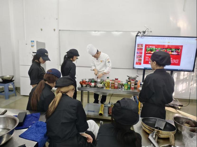 2025年12月1日,广州华商职业学院酒店管理与厨艺学院25级西式烹饪工艺专业的同学们,在吴浩波老师的专业指导下,开展了一堂别开生面的西式汤品实践课。师生共同沉浸于罗宋汤的烹饪艺术之中,从食材处理到火候调控,亲身实践西式烹饪所蕴含的精准技法与饮食文化魅力。