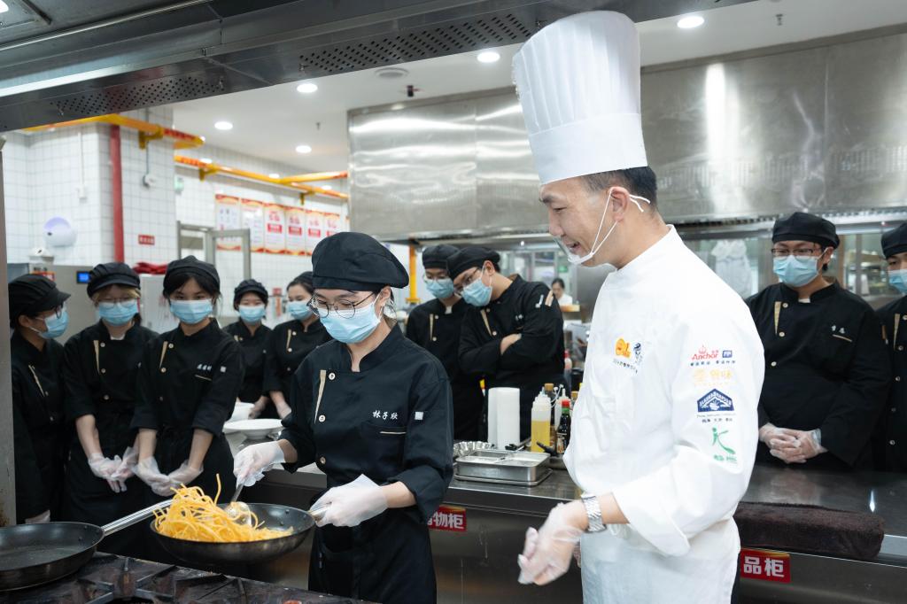 主干课程:西餐烹饪基本功、西餐烹饪制作工艺基础、中外饮食文化、西餐原料学、西餐热菜工艺、AI西餐菜品研发与创新、西式面点制作工艺、西餐数字化营销实务等。可考取的技能证书有西式烹调师、西式面点师、中式面点师、公共营养师、配餐师等。