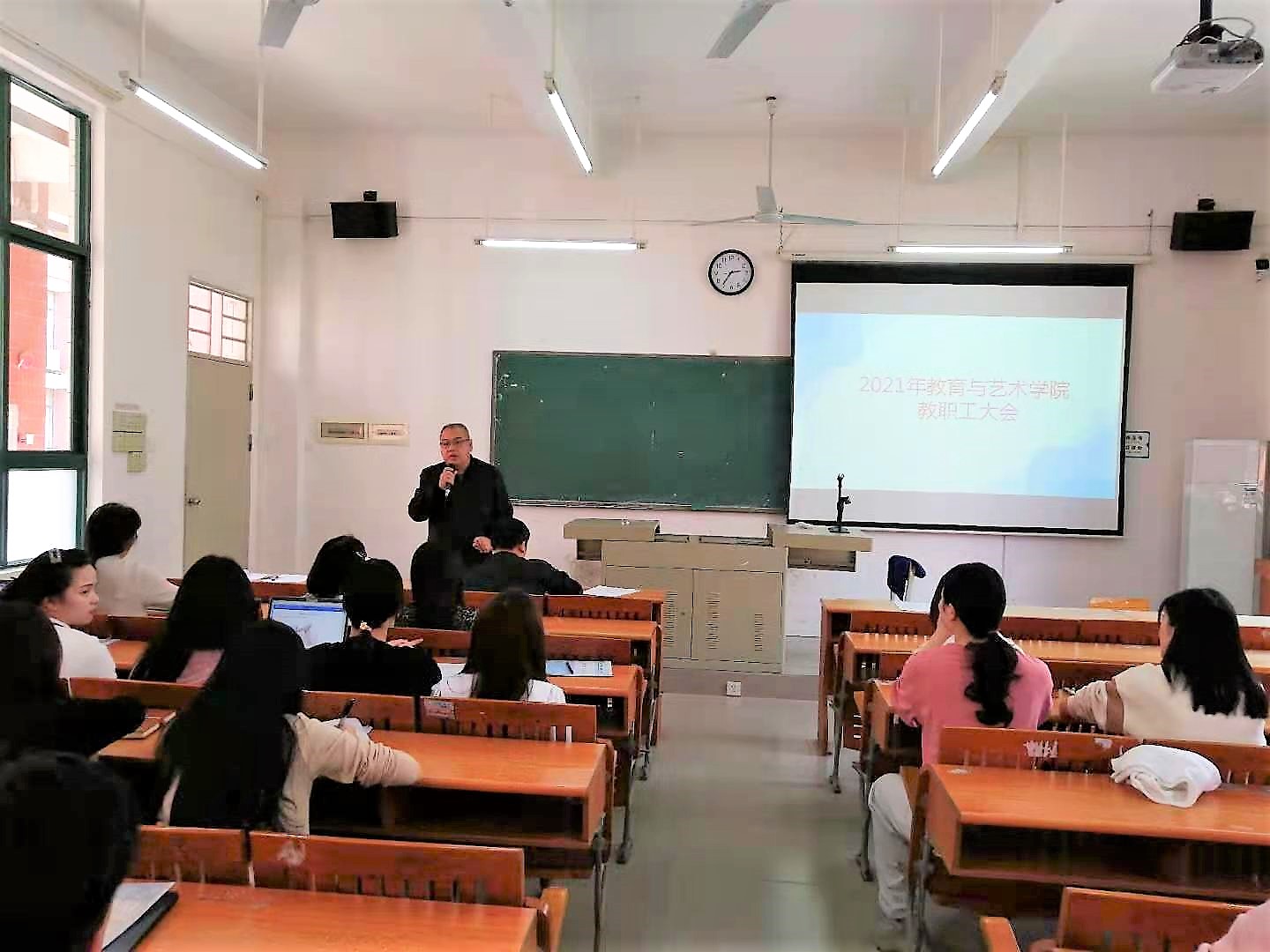 2021年3月25日,教育与艺术学院全体老师在博C302召开了全院教职工大会。会议由教育与艺术学院刘玉娟院长主持,全体教职工参会。